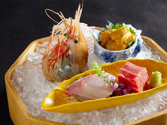 旬のキンキや、新鮮な生雲丹とボタンエビのお造りなど北海道の海の幸をふんだんに取り揃えました。はなの名物土鍋釜飯は、秋鮭とイクラの「親子釜飯」を。