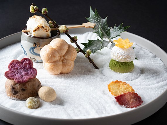 模様や配置にルールはなく自分だけの枯山水を完成させる、楽しみながら食べられる芸術です。五感でその美しさをご堪能ください。