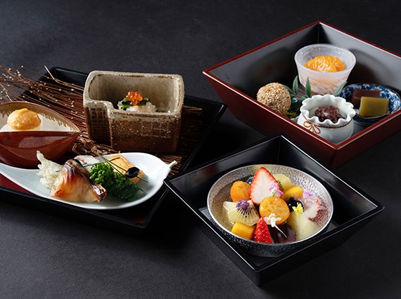 日本料理ならではの四季の美しさを映したセイボリーと、季節ごとに変わるスイーツを丁寧に詰め合わせました。まるで宝箱のような美しいメニューで、お重を開けるたびに目に飛び込む感動を。